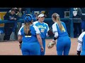 Pac-12 Networks' Kate Scott and Amanda Freed analyze UCLA's 5-4 win over Arizona on Friday in game two in Los Angeles. The win gives the Bruins at least a share of the Pac-12 title and the league's automatic berth to the upcoming NCAA Tournament. Aaliyah Jordan came in clutch for UCLA with the go-ahead two-run double in the fourth inning.Recap: No. 3 UCLA softball outlasts No. 6 Arizona in thriller to clinch share of Pac-12 title football score | |